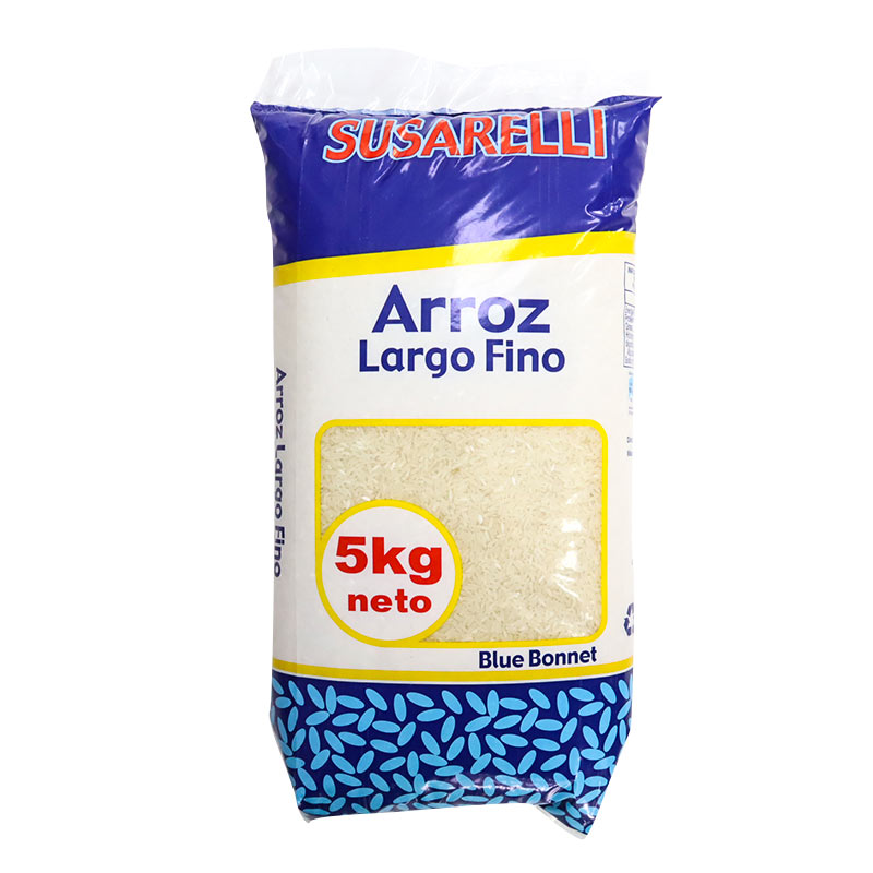 Arroz grano largo fino, tipo 00000, envase de 5 kilos, marcas Rofil, Cóndor o Susarelli.
