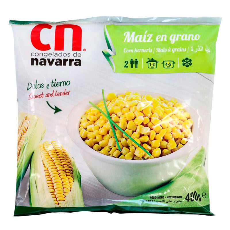 Choclo en grano congelado, bolsa de 400 gramos, marca Congelados de Navarra