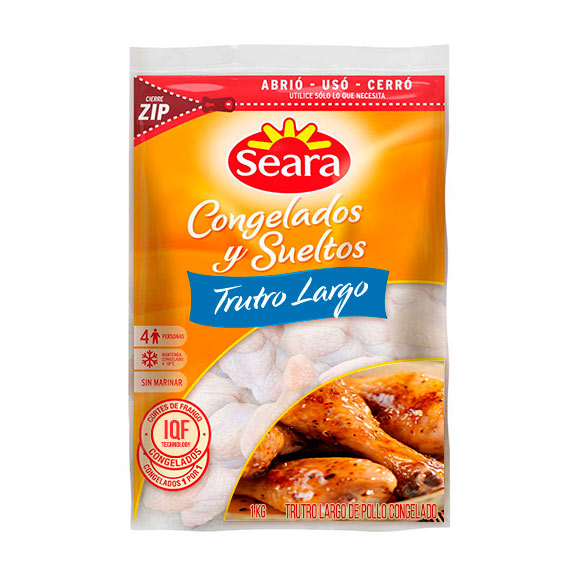 Trutro largo de Pollo congelado IQF, envase de 1 kilo, marca Seara